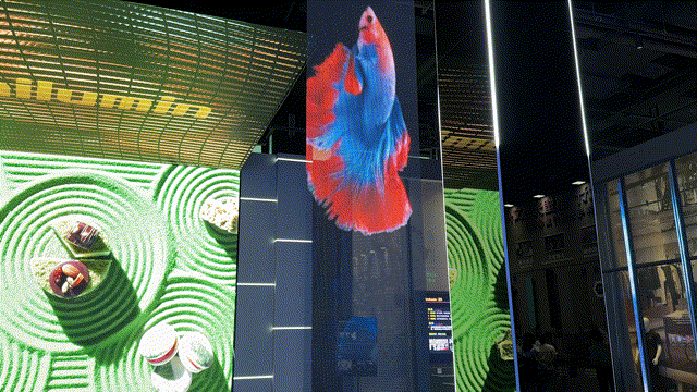 目前,洲明科技已经将全息透明显示在如工程舞台、商用展演、广告营销等B端落地,并开辟透明全息一体机、AI全息数字鱼缸、AI全息陪伴助手等C端品类,丰富普通消费者的家居、家装选择。林洺锋在发布会上表示:“白天,Udesign SV 全息透明屏是一块普通的玻璃;夜晚,它将变成3D悬浮的广告屏。透明全息技术不仅在技术上领先,在实际应用中也展现出广泛的适应性,涵盖了从商业显示到情感陪伴的多元场景。特别是与AI内容、AI交互、AI生成技术结合,透明全息显示应用更进一步获得了“活灵活现”的灵魂,极大增强了新品类的价值生命力。